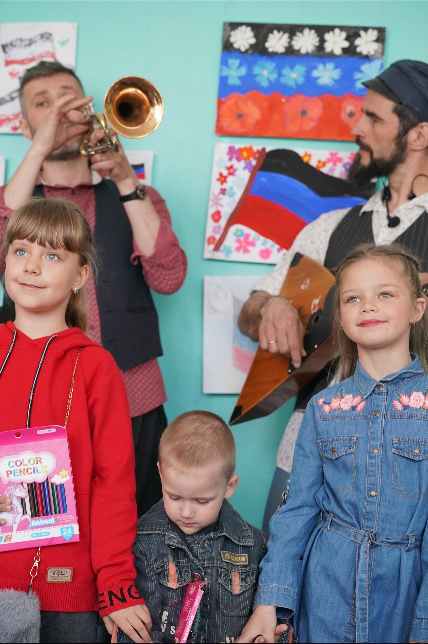 Каждый день мы давали по 2-3 представления. Школы, детдом, Школа искусств, госпиталь, в Донецке сыграли в Доме работников культуры. Везде нас принимали с радостью с открытыми сердцами. Везде были внимательные глаза, радостный смех, участие в наших играх, совместное пение народных песен Цоя и Высоцкого.